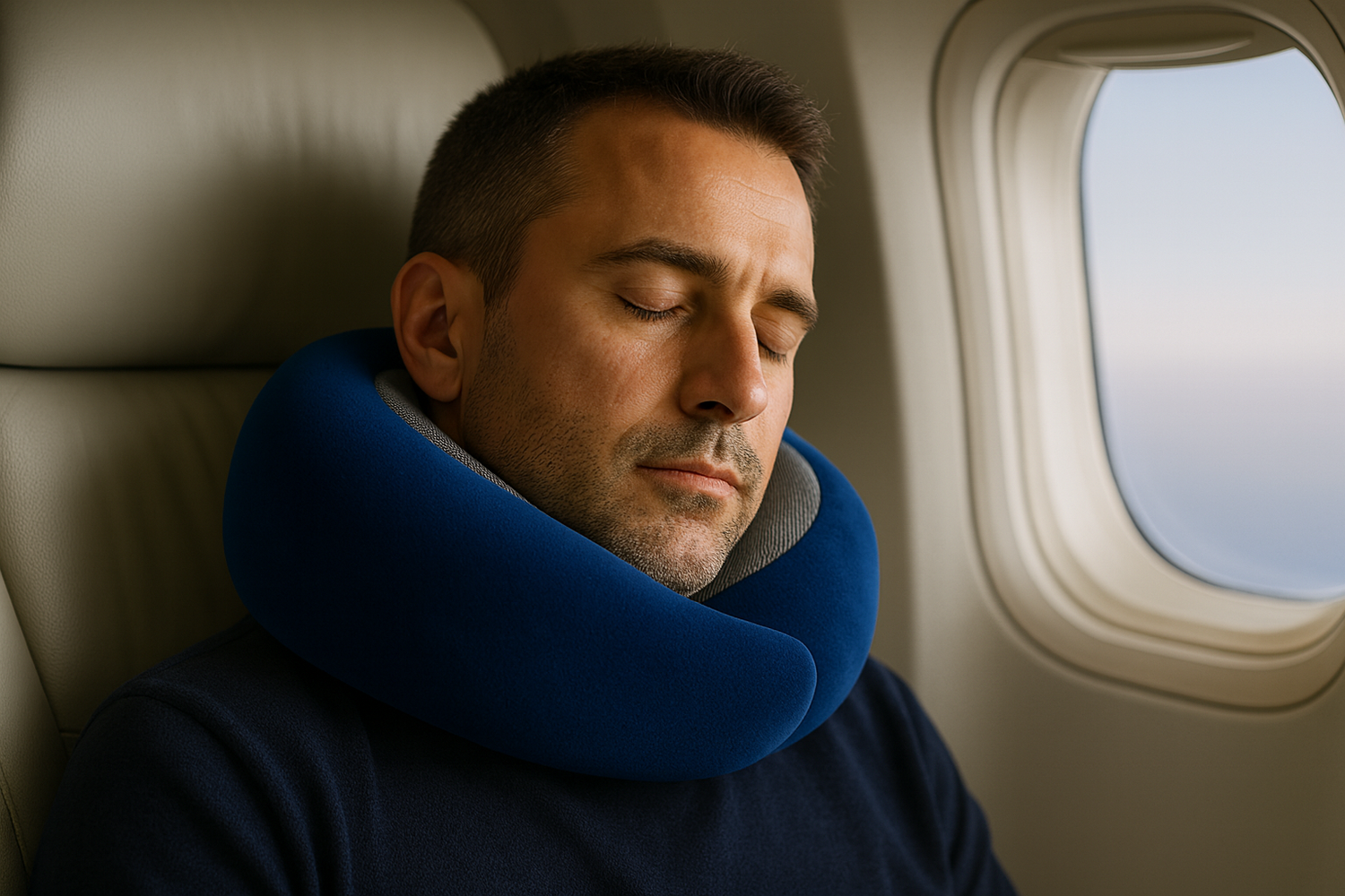 Discover the perfect travel companion : A 360ยฐ neck pillow that keeps you comfortable and supported on any journey - plane, train, or car.